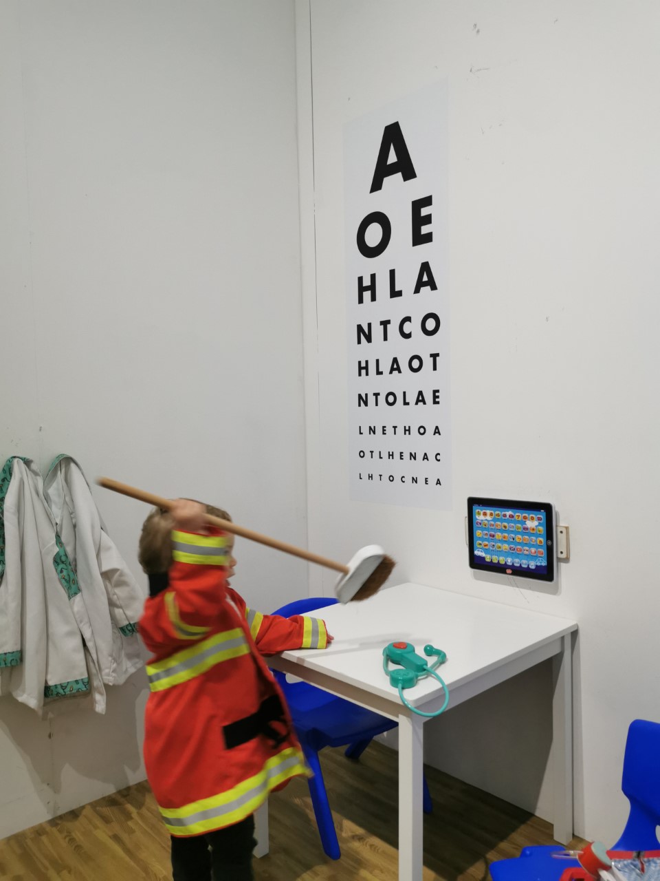 This is such a popular and gem of a Walthamstow venue! It’s really small (which is lovely) with a limit on the amount of children per session to manage the space, has well thought out with different rooms for the children to engage in, and huge seating area in the cafe part for mums to relax in afterwards/before if required/meeting up with friends. LM had a frickin blast running between all the rooms and playing with all the various role play items!! Therefore excuse these photos: it was really hard to get a good picture of him when he was moving so much in enjoyment! (Also some random activity choices going on from LM here, brushing worksurfaces etc- it was brilliant!!) This is definitely one of our top contenders for our best places in London!